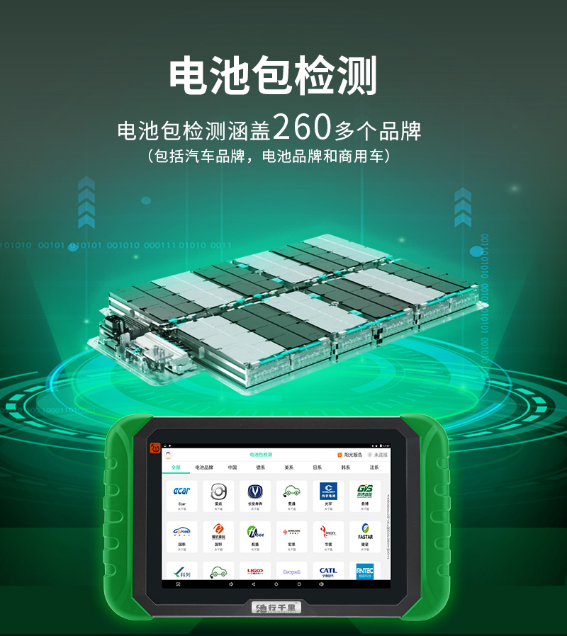 HDSRP01新能源动力电池诊断仪是易一款面向新能源汽车的专业智能检测设备。设备集成了新能源汽车整车检测及车辆电池包检测功能。 支持新能源车电池包深度检测,精确读取单体电池温度电压、故障信息、读取电池包数据流,快速判定电池组故障。 HDSRP01诊断仪支持上百个新能源车全系统诊断,多个品牌空调压缩机测试,支持CANFD协议,设备功能强大、一键升级、车型智能识别、操作简单易上手、小巧便携、性价比高。